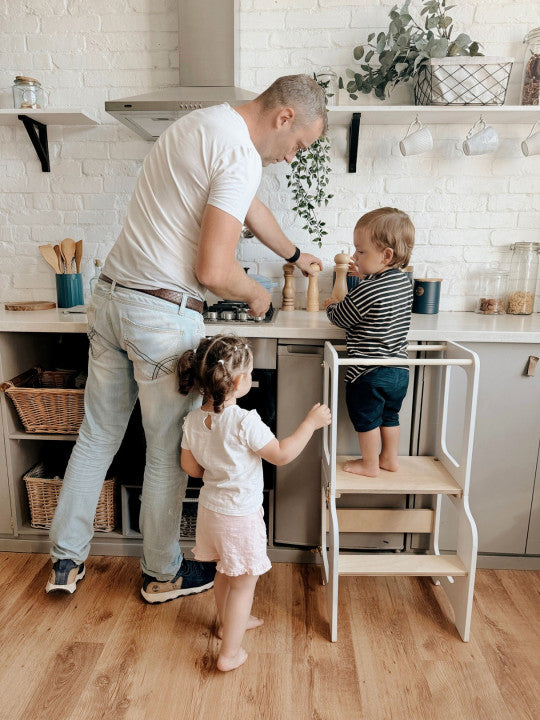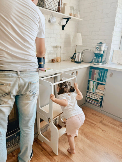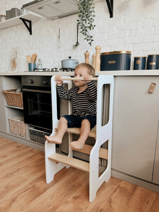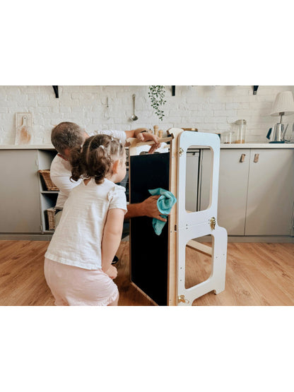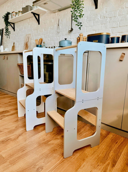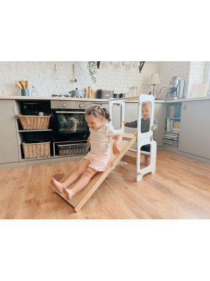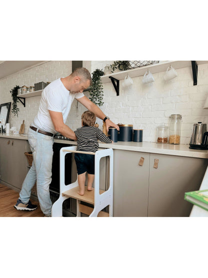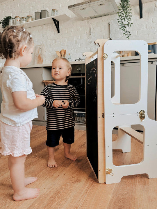 Tårnet er robust og holdbart, så det kan følge barnet i mange år og samtidig give familien fleksibilitet i hverdagen. Det er ikke bare praktisk – det er også smukt designet og passer godt ind i hjem med fokus på æstetik og funktionalitet.