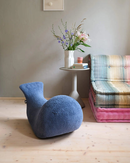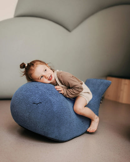 “ba” er mere end et gyngedyr – han er en ven for livet. En blid, gyngende hval, der inviterer børn fra ca. 18 måneder til rolig bevægelse, nærvær og afslapning.