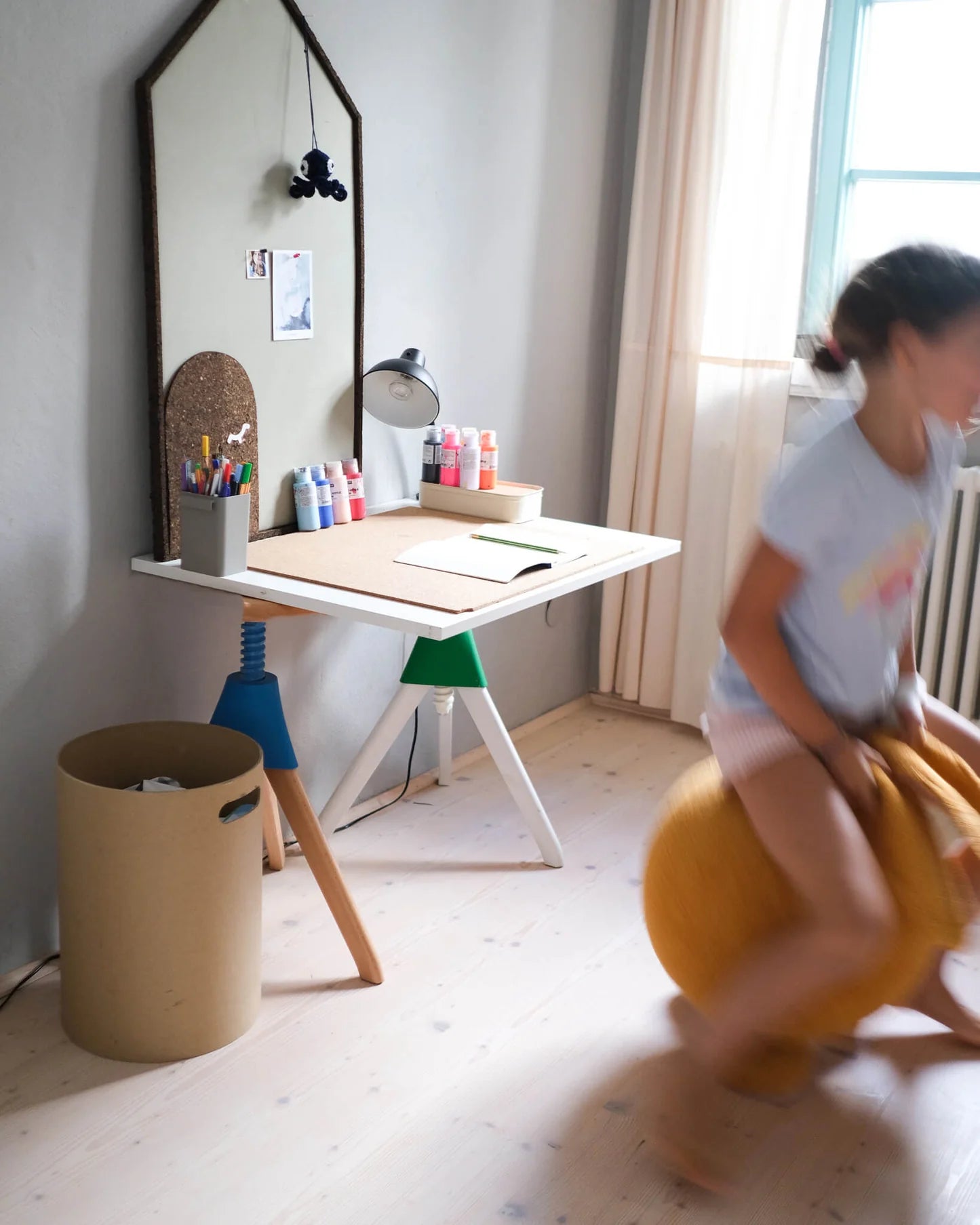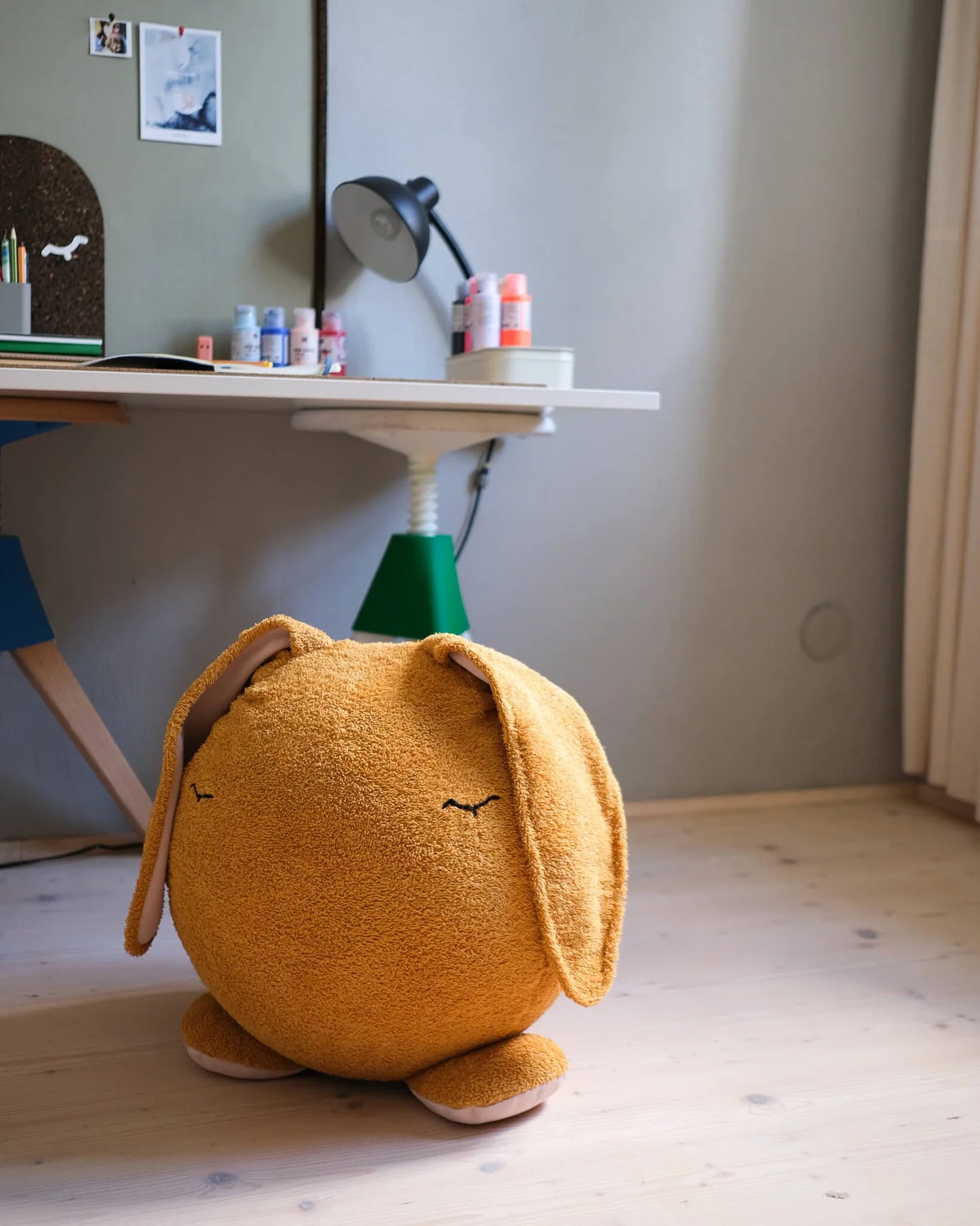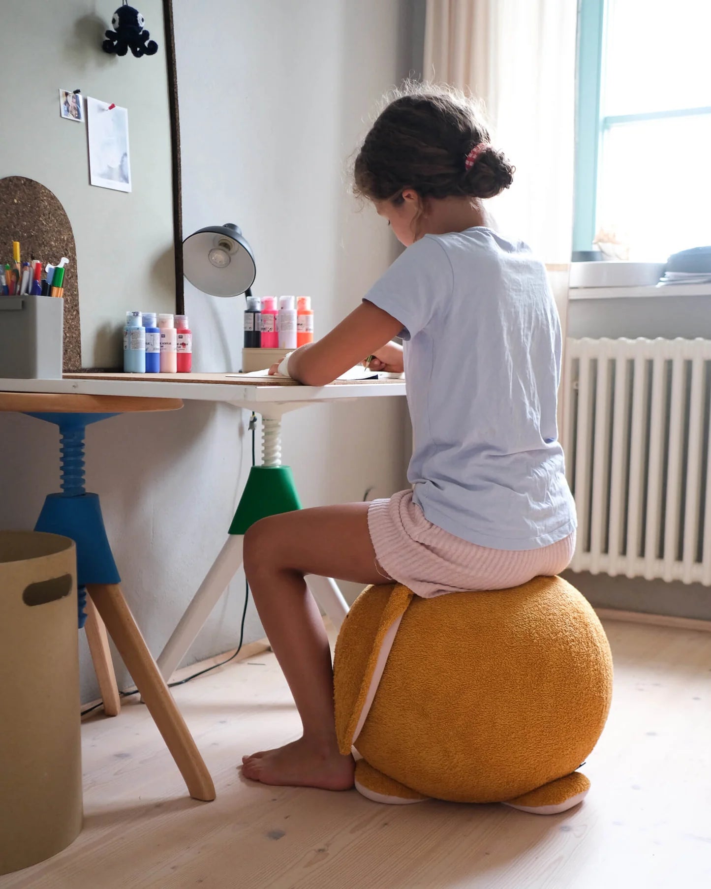 Den bløde hoppekanin inviterer til at hoppe, tumle og balancere, men giver også plads til koncentration. Når legen tager en pause, bliver “da” et behageligt siddested – perfekt til at tegne, læse eller lave lektier.