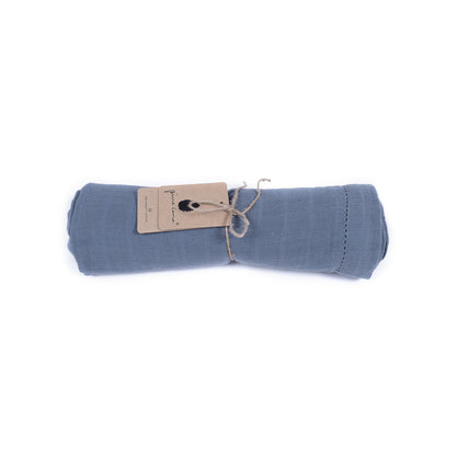 Pine Cone Björk svøb i den smukke Blueberry-farve er vævet i 100% økologisk bomuld med en elegant fagoting langs kanten. Det er perfekt til at svøbe den nyfødte i og giver tryghed fra første dag. Når barnet vokser, fungerer det lige så godt som et let tæppe på lune sommernætter eller som en stor, blød krammeklud.