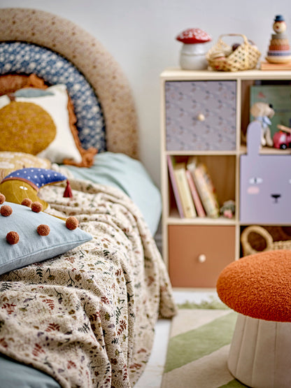 Bertil Puffen fra Bloomingville MINI er en skøn og fantasifuld tilføjelse til børneværelset. Med sin svampeform og sit teksturerede, rødlige stof bringer puffen både varme og leg ind i rummet. Den bløde overflade gør den ideel som lille stol, fodskammel eller blot som en hyggelig og dekorativ detalje.