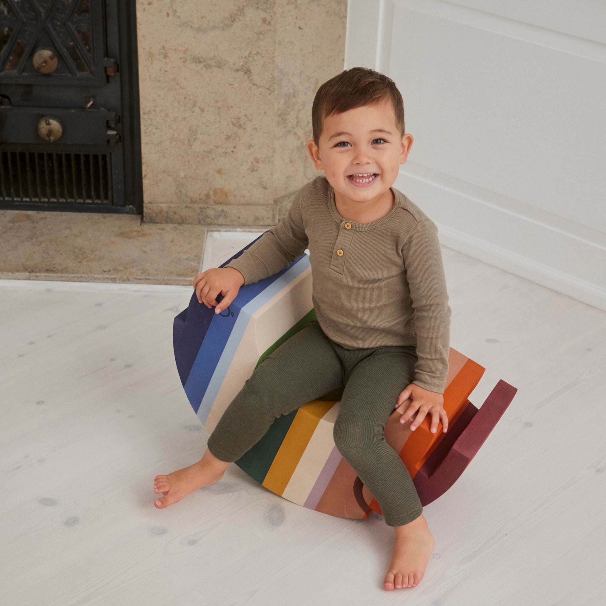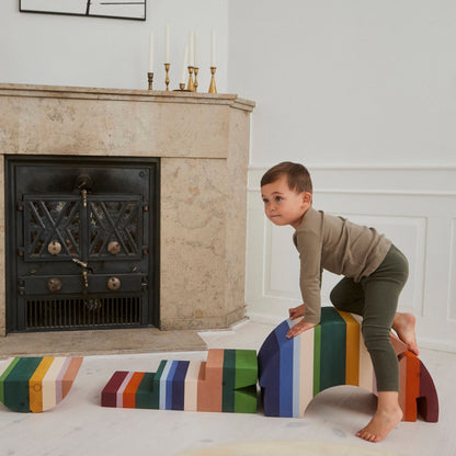 Den bløde, skridsikre overflade i EVA-skum gør Elefanten tryg at lege på og skånsom mod gulvet. Farvekombinationen Mountain tilfører et harmonisk og tidløst udtryk, der passer smukt ind i både børneværelse og stue.