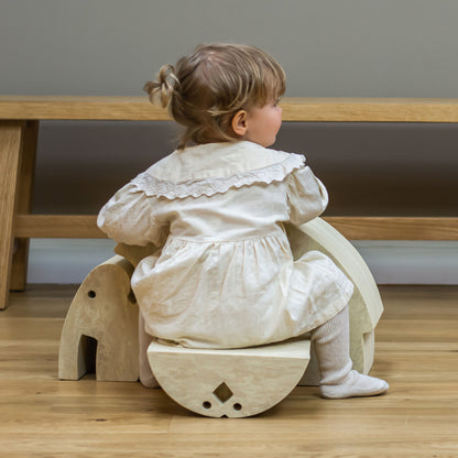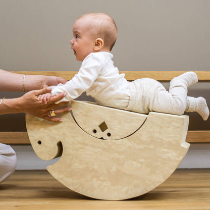 Kyllingen passer også ind i maven på den store bObles Elefant, som så kan bruges som vippe og styrke vestibulærsansen – en rolig og stimulerende aktivitet for baby. Når barnet når tumlingealderen og kan sidde selv, bliver kyllingen ideel til kontrolleret vip frem og tilbage eller fra side til side med fødderne solidt plantet på gulvet.
