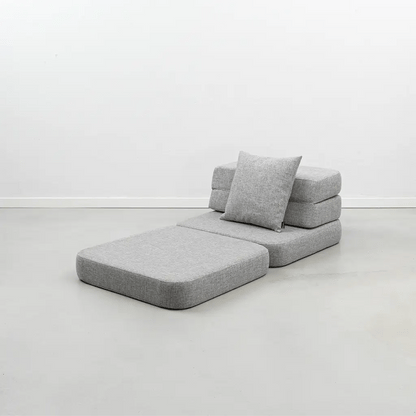 Sofaen har en sammenklappelig ryglænsløsning og kan placeres frit i rummet. Den leveres med en pude, som kan bruges til at skabe forskellige siddepositioner og ekstra komfort. Den er let at flytte rundt og ideel som midlertidig gæsteseng – fx når et barn kryber ind i soveværelset midt om natten for at sove tæt på forældrene.