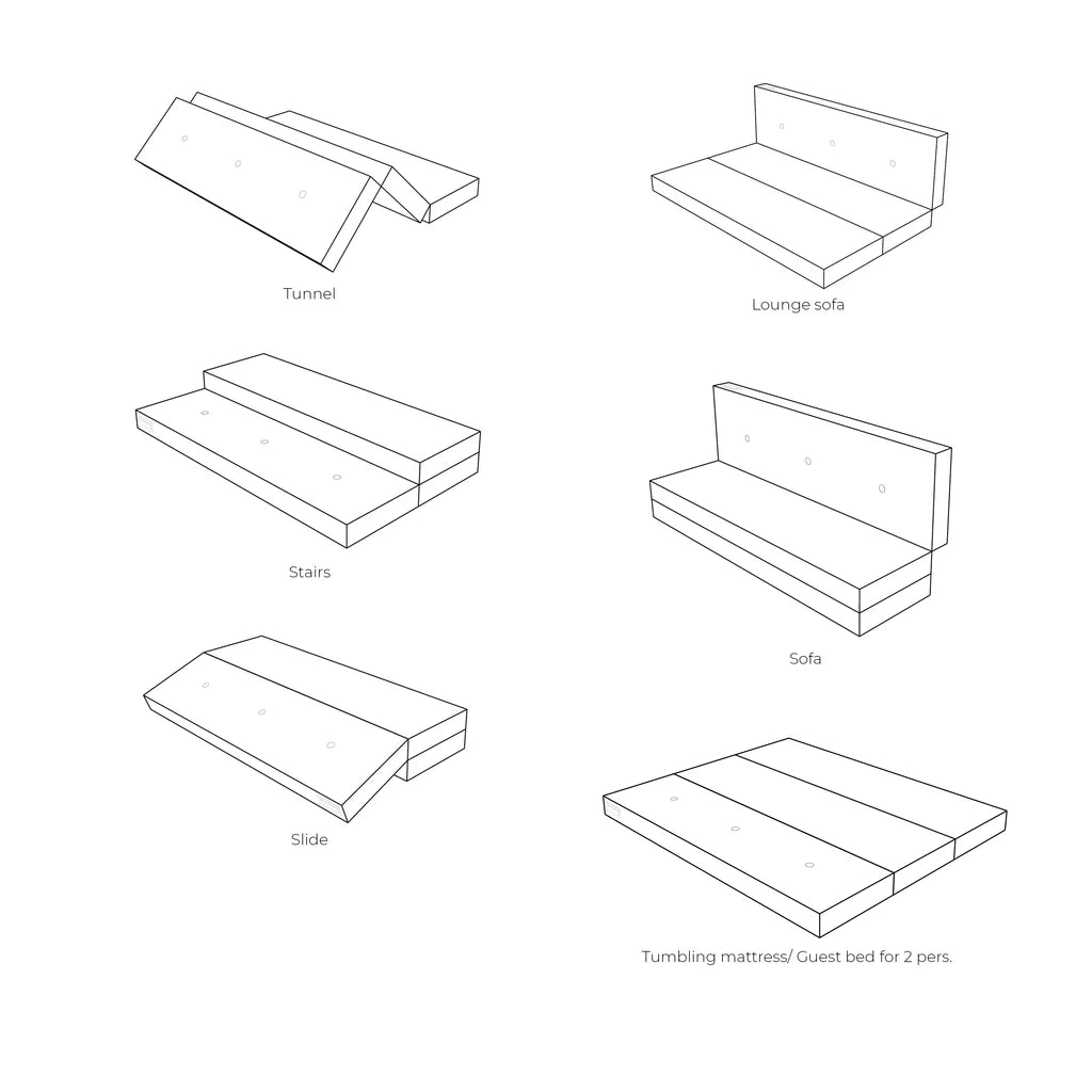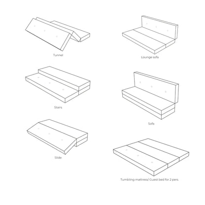 Med sine tre foldbare lag kan KK 3 Fold XL bruges som tumlemadras, loungesofa, puf eller som gæsteseng. Den ekstra længde på 20 cm gør den særligt velegnet som soveplads til både børn og voksne. Et funktionelt og stilrent møbel, der passer perfekt i både børneværelset, legerummet og stuen.