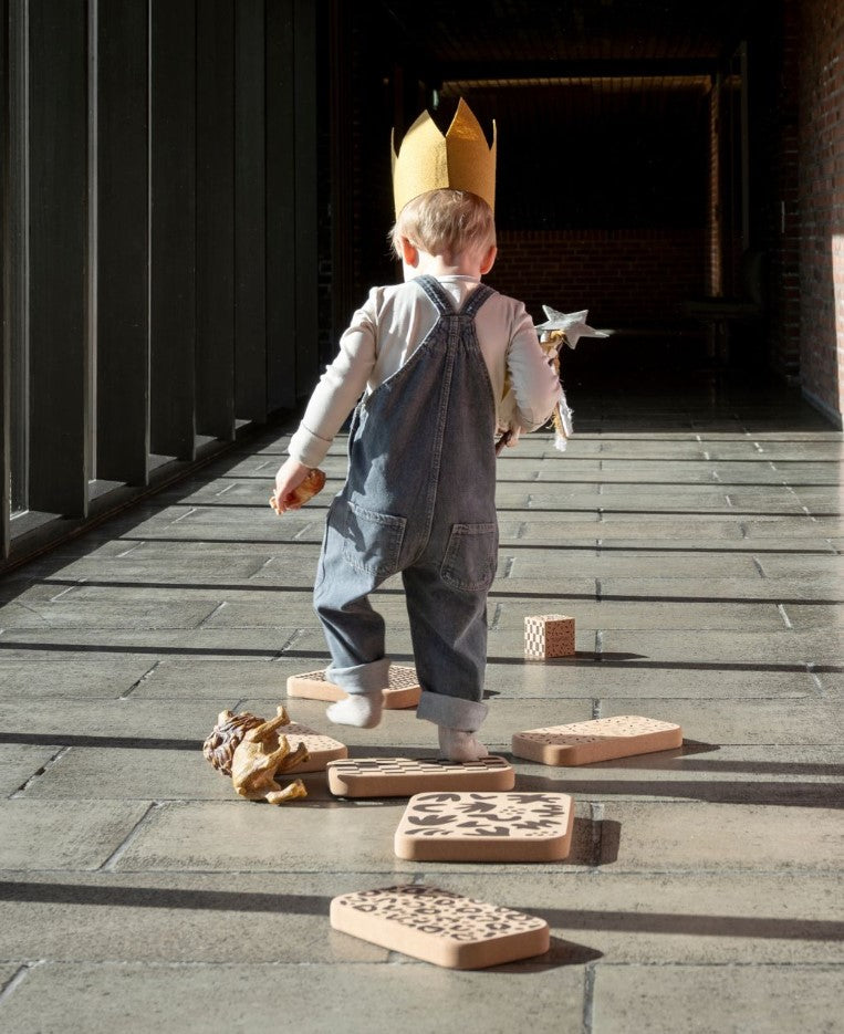 Lad fantasien få frit spil: er stenene øer i havet, stier gennem junglen – eller måske bjerge, der skal bestiges? Balancestene fra by KlipKlap indbyder til aktiv, fri leg, hvor barnet selv sætter scenen. Når de ikke er i brug, fungerer de som dekorative designobjekter, der passer ind i ethvert moderne hjem.