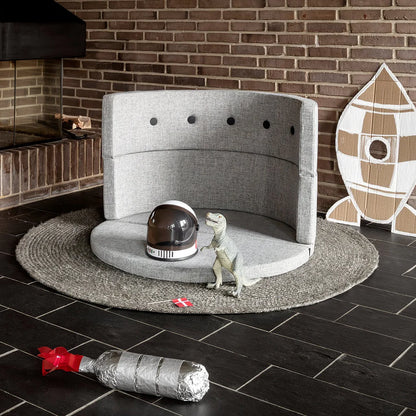 KK Play Fold fra by KlipKlap er et alsidigt og foldbart møbel, der inviterer til leg, fantasi og hygge i børnehøjde. Med sin runde form og højde på 65 cm skaber den et trygt og inspirerende rum, hvor barnet kan udforske, slappe af eller lege frit.