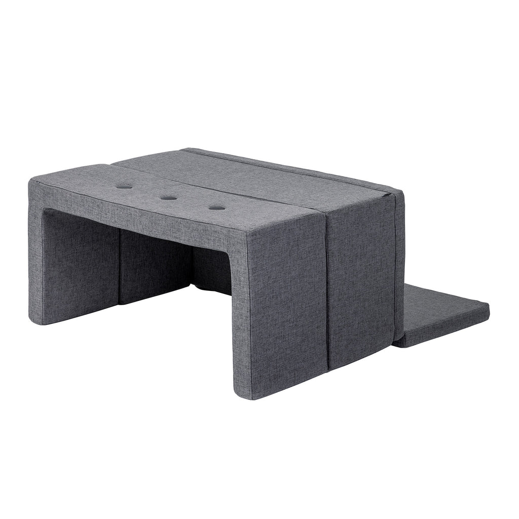 KK Play Fold kan foldes på mange måder og forvandle sig fra en hyggelig sofa til et legeområde, et bord, en hule eller endda en gynge. Det er et møbel, der stimulerer barnets fantasi og motoriske udvikling gennem aktiv leg og bevægelse.