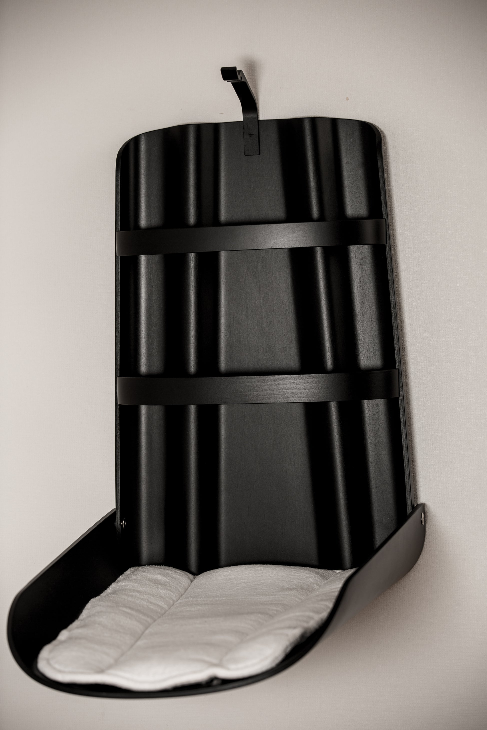 Når puslebordet ikke er i brug, kan det nemt klappes sammen, så det kun fylder minimalt på væggen. Det gør Nathi til et oplagt valg for familier, der ønsker en gennemtænkt, æstetisk og pladsbesparende løsning i babyhverdagen.