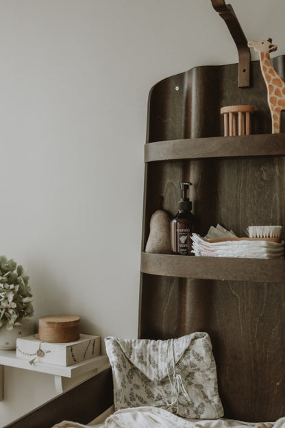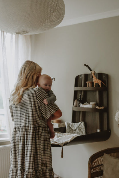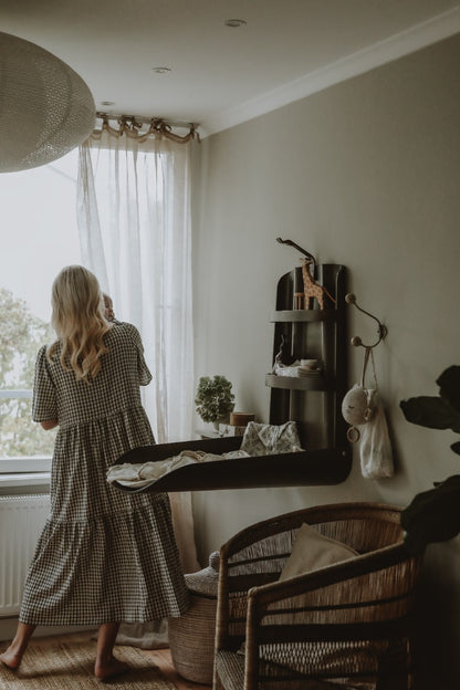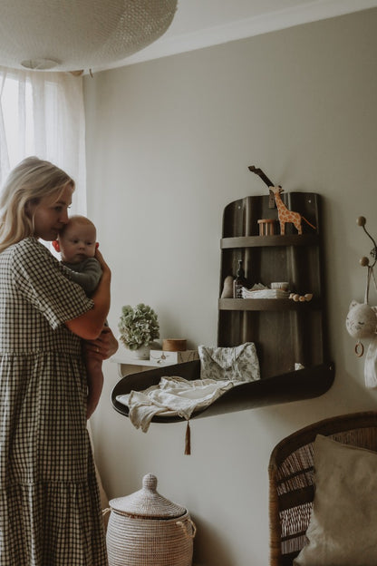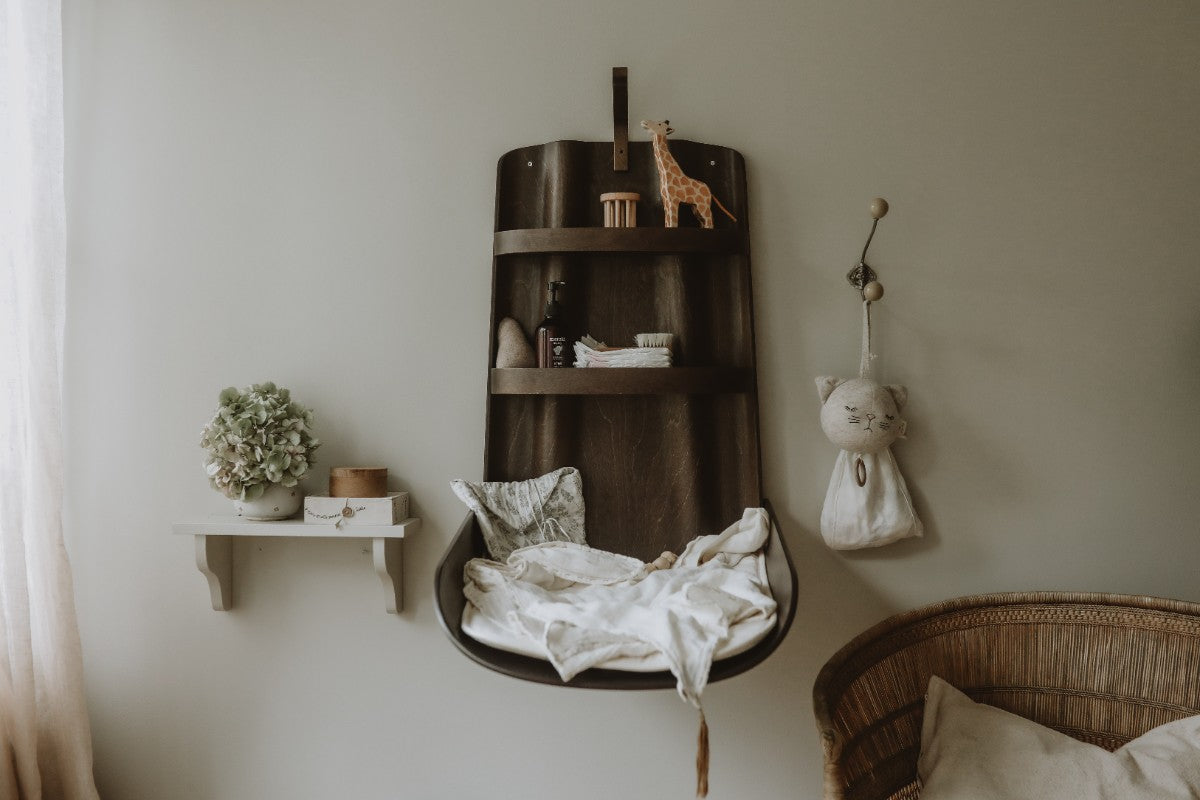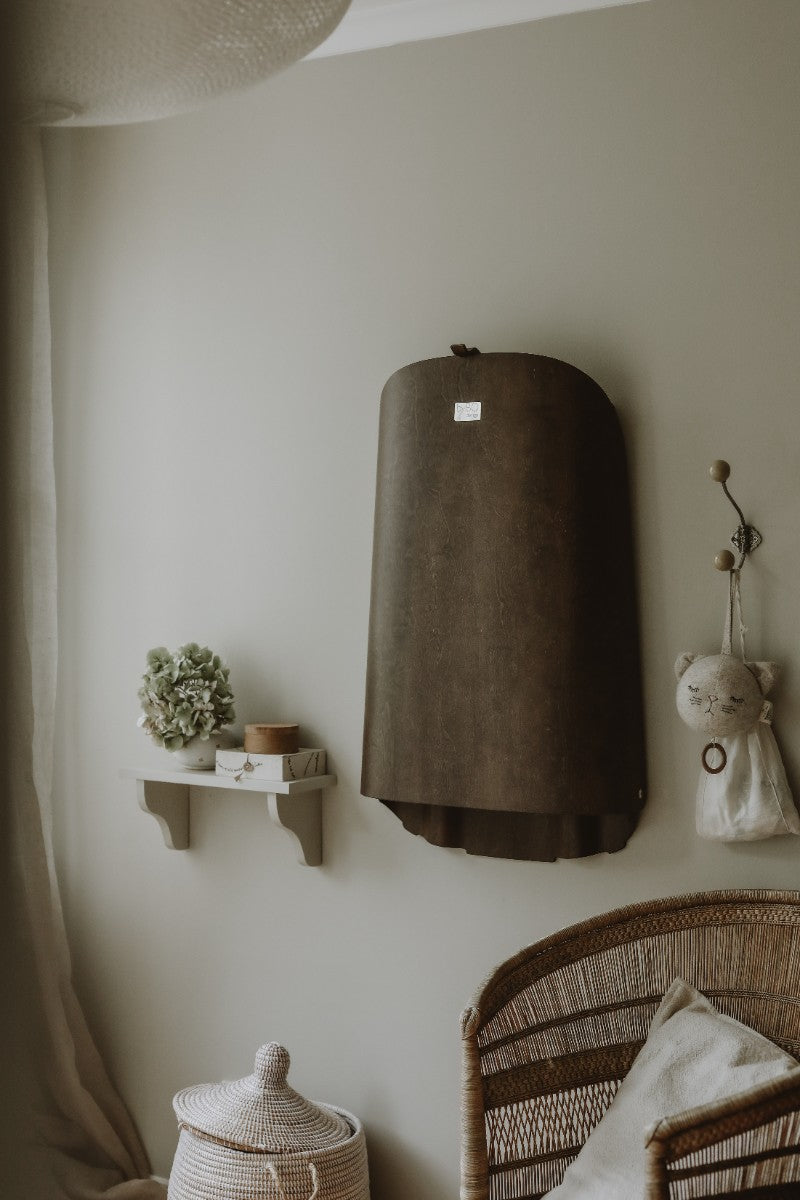 Når puslebordet ikke er i brug, kan det nemt klappes sammen, så det kun fylder minimalt på væggen. Det gør Nathi til et oplagt valg for familier, der ønsker en gennemtænkt, æstetisk og pladsbesparende løsning i babyhverdagen.