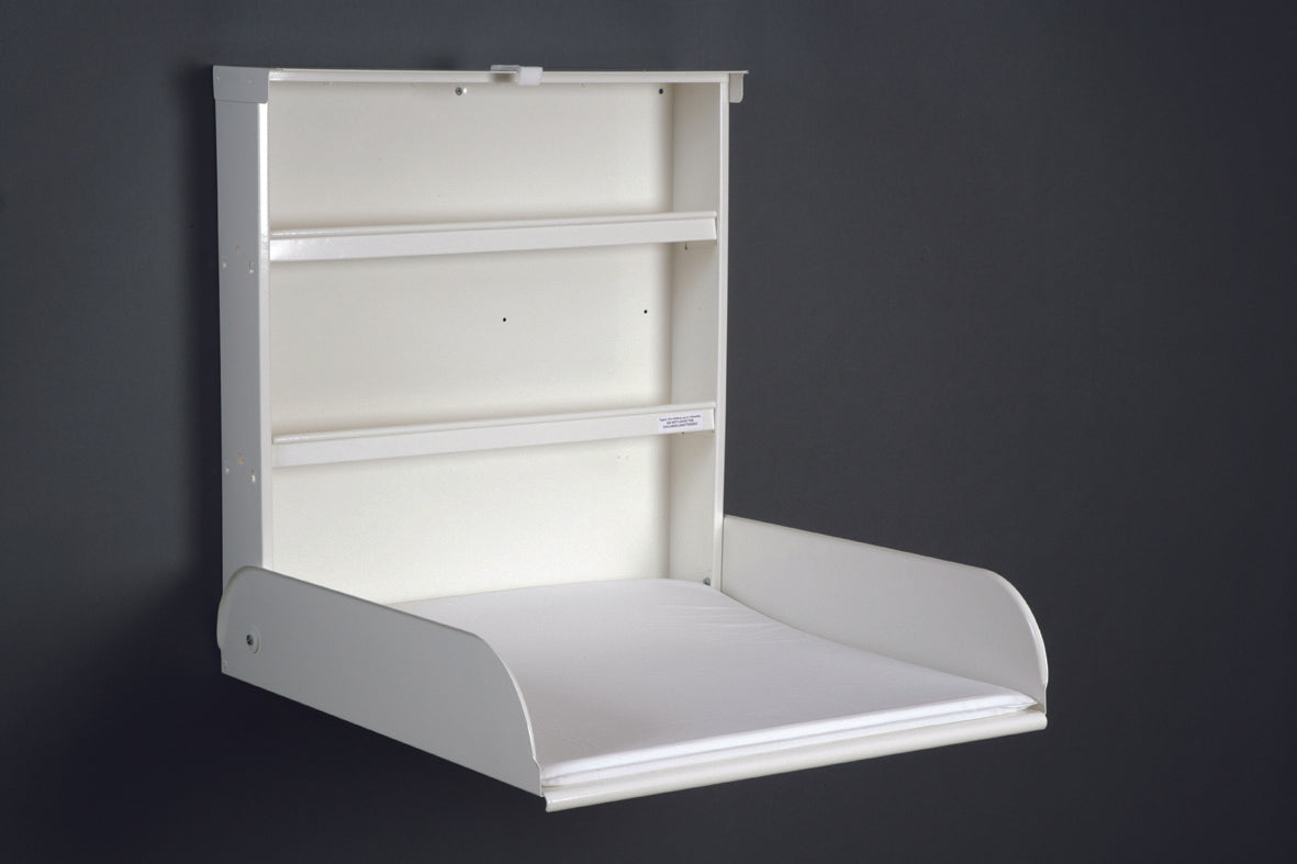 - Væghængt puslebord i stål med god opbevaringsplads