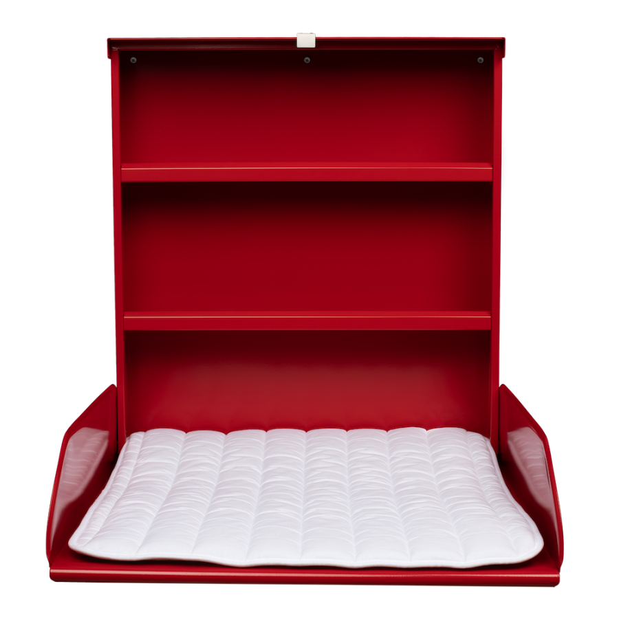 Pippi er fremstillet i robust stål og er nemt at montere og håndtere i hverdagen. Når puslebordet ikke er i brug, klappes det let op mod væggen og fylder minimalt. En solid og gennemtænkt løsning til hjem, hvor puslepladsen gerne må være både fleksibel og pladsbesparende.