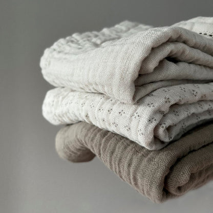 Pine Cone Edith stofbleer i 3-pak i den smukke Mushroom-farve er en uundværlig del af hverdagen med baby. De er vævet i blød økologisk bomuld og afsluttet med en fin fagoting langs kanten, der giver et ekstra elegant udtryk.
