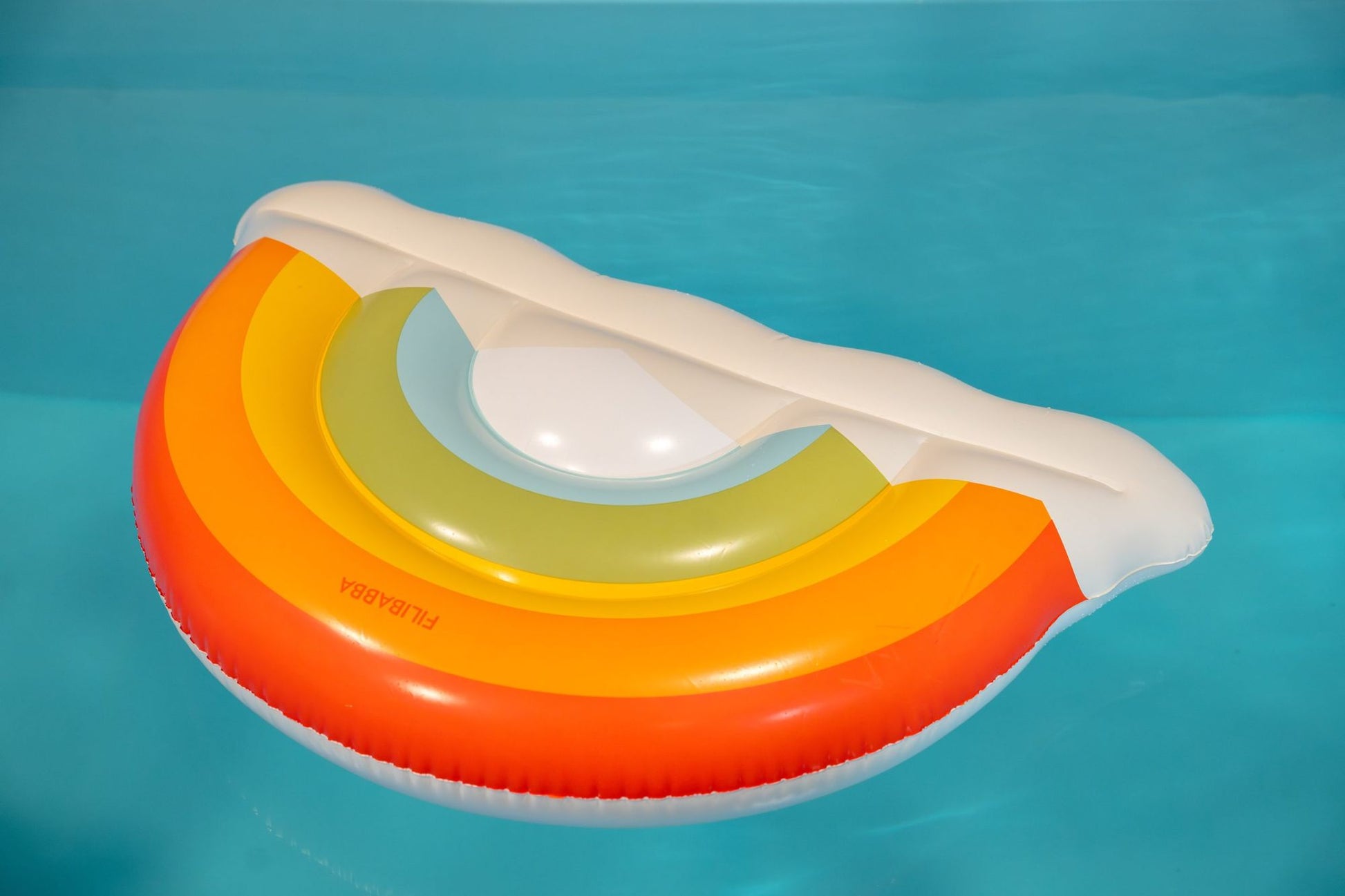 Hvem drømmer ikke om at flyde ovenpå en gigantisk, farverig regnbue med candyfloss-bløde skyer? Med Filibabbas regnbueformede bademadras i strålende farver forvandles svømmebassinet til et magisk badeeventyr – en oplevelse, der begejstrer både små og større børn.