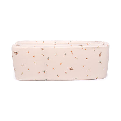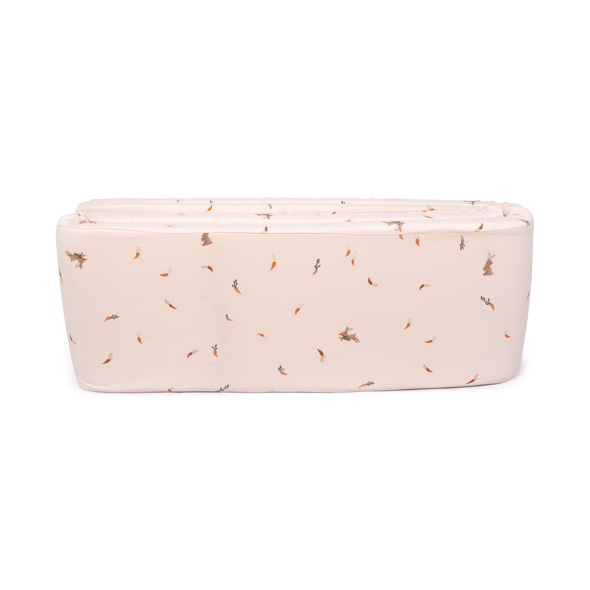 Skab en tryg og hyggelig atmosfære i tremmesengen med Filibabbas sengerand i det legende Carrot Thief-design. Betrækket er fremstillet i 100% GOTS-certificeret økologisk bomuld og kombinerer høj kvalitet med et sødt motiv, der giver børneværelset et varmt udtryk.