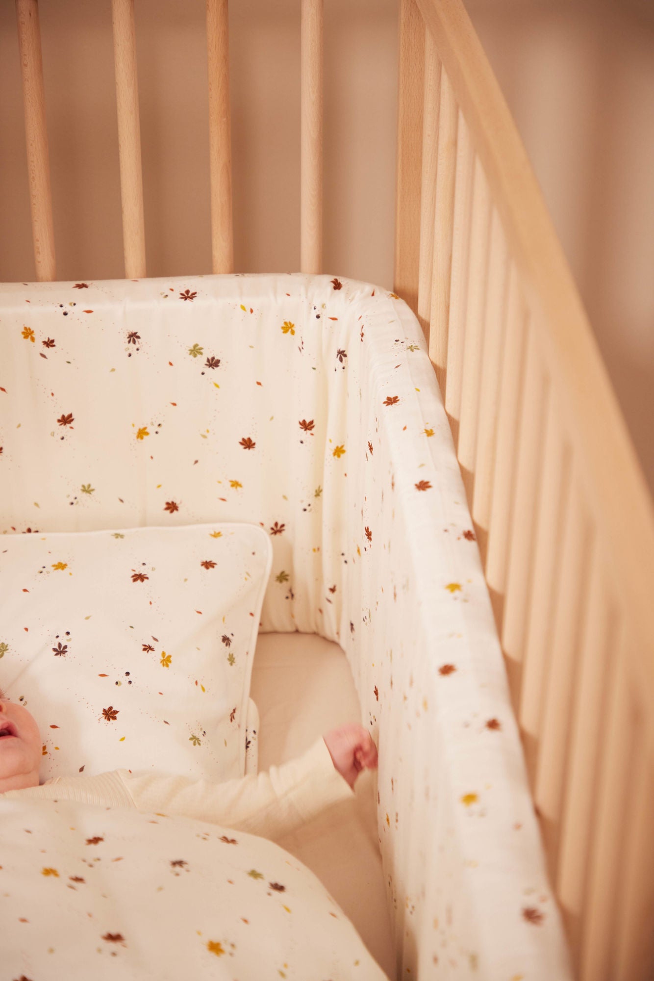 En blød og funktionel sengerand i økologiske materialer – skabt til at give din baby tryghed og komfort i tremmesengen.