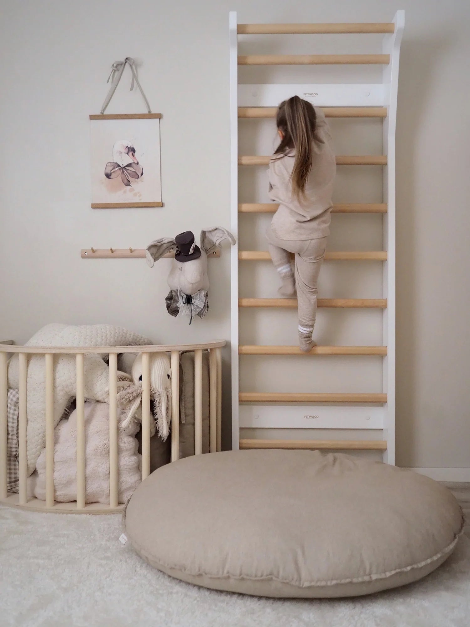 Puden er designet med fokus på både krop og sind og er ideel til alt fra læsning og meditation til leg eller hyggestunder sammen. Den passer smukt ind i det nordiske hjem og kan med fordel kombineres med FitWoods ribbevægge for et helhedsudtryk. Betrækket kan tages af og maskinvaskes, så puden er nem at holde ren eller give et nyt udtryk med et ekstra betræk.