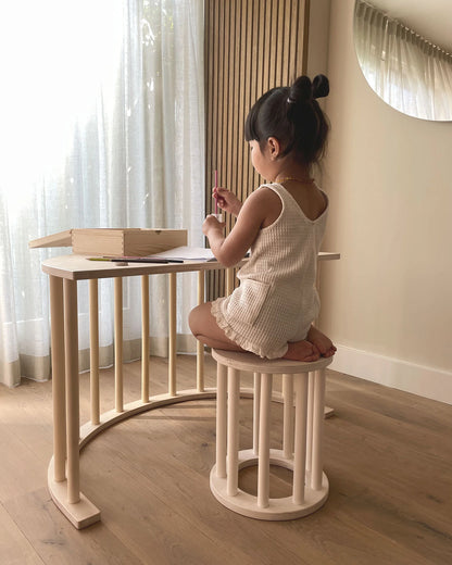 LUOTO-skammelen fra FitWood er den perfekte ledsager til den populære LUOTO klatrebue og forener funktionalitet, leg og design i ét møbel. Sammen danner de et smukt arbejdsområde, ideelt til børn i alderen 6–11 år, hvor kreativitet og koncentration kan udfolde sig.