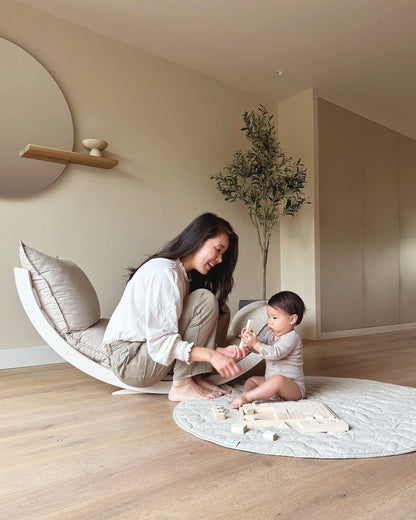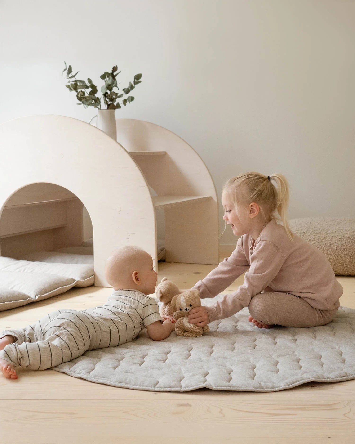PILVI er skabt til at følge familiens hverdag – det er nemt at tage med, kan maskinvaskes og er ideelt til både hjemmet, besøg hos venner og små stunder udendørs. Et alsidigt tæppe, der indbyder til nærvær, leg og udvikling – uanset hvor I er.