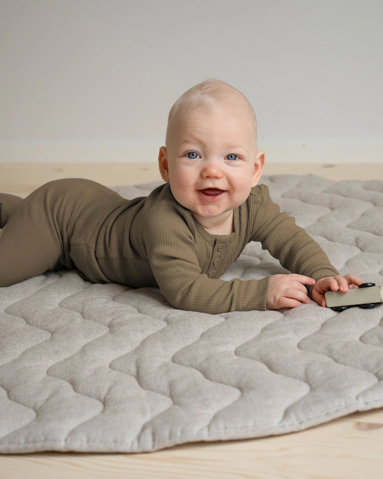 PILVI-legetæppet fra FitWood er den blødeste og mest trygge base for barnets allerførste eventyr. Fremstillet af slidstærke, giftfrie og certificerede materialer giver det let polstrede tæppe et sikkert og behageligt underlag til at øve vigtige færdigheder som mavelejring, kravlen, rulle og at sidde selv.