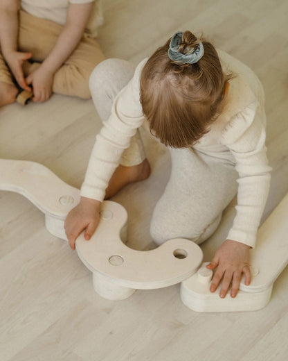 POLKU balancebane L fra FitWood er den største og mest alsidige udgave i serien – designet til børn, der elsker bevægelse, balance og kreative udfordringer. Med sine mange forskellige bjælkeformer kan banen sammensættes på utallige måder, så barnet selv kan skabe sjove, snoede eller udfordrende baner, der styrker både motorik og fantasi.