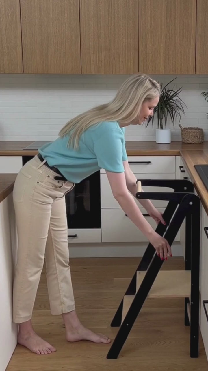 Det sammenklappelige læringstårn fra Leg&go gør det nemt at inddrage dit barn i hverdagens aktiviteter i køkkenet – sikkert og trygt. Tårnet leveres færdigsamlet og er klar til brug med det samme. Med en justerbar ståplatform vokser det med barnet fra ca. 18 måneder til 6 år.