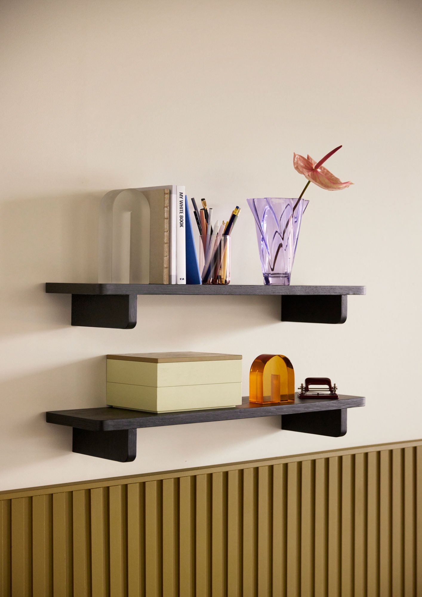 En lille hylde med stor personlighed – skab din egen udstilling i børnehøjde eller tilføj et strejf af sort elegance på væggen.