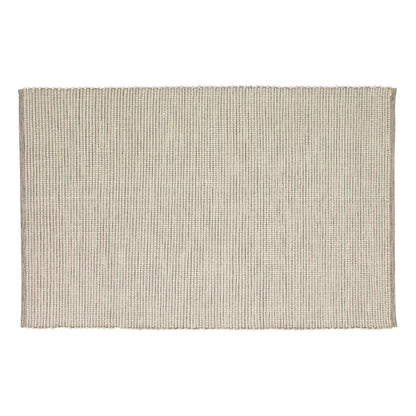 Det håndvævede Poppy-tæppe fra Hübsch er lavet af gråt og hvidt bomuld med en grov vævning, der giver et moderne og skandinavisk udtryk. Den tydelige struktur og rolige farvesammensætning skaber en hyggelig og afslappet stemning i hjemmet – uanset om det placeres i stuen, spisestuen eller et roligt læsehjørne.