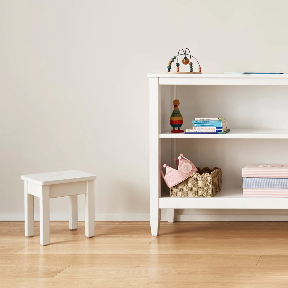 Isle of Dogs Design børneskammel er et håndlavet og solidt møbel, skabt til små eventyrere. Den stabile konstruktion giver barnet et sikkert underlag, uanset om skamlen bruges som siddeplads, trin til at nå op eller som en del af legen.