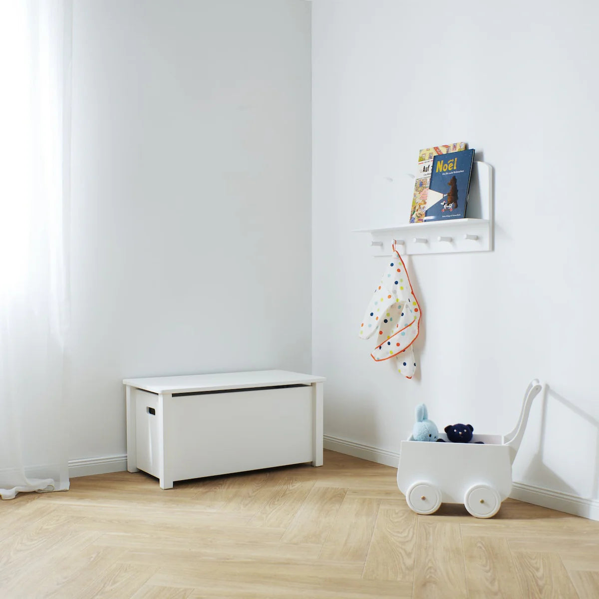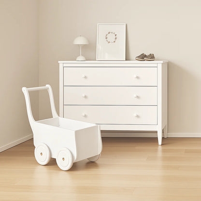 Dukkevognen er solidt konstrueret og designet i børnehøjde, så den er nem at skubbe rundt med – både inde og i trygge rammer udenfor. Det enkle udtryk og de afrundede former gør den sikker at bruge og let at passe ind i børneværelset.