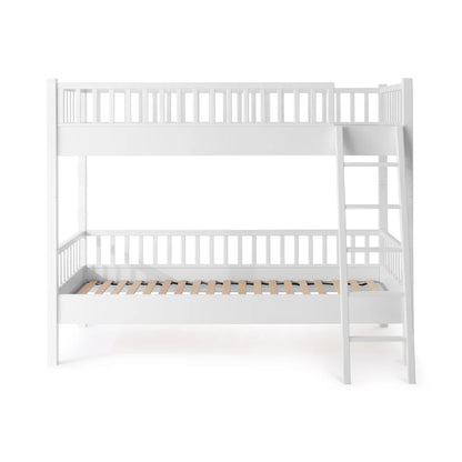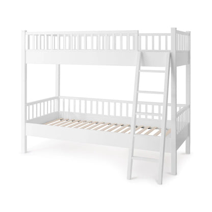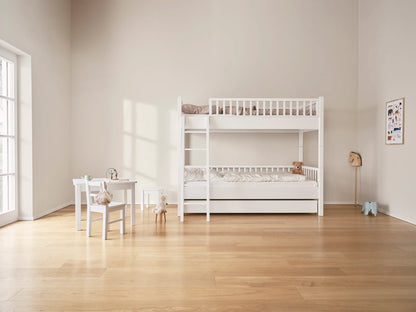 Køjesengen er fremstillet i hvidlakeret bøgetræ fra bæredygtigt skovbrug. Alle kanter er afrundede, og der er anvendt giftfri lim og lak uden tungmetaller, som lever op til EU-standard 71.3 og sikrer et sundt og trygt sovemiljø.