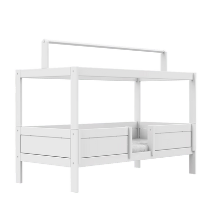 Sengen har nem indstigning og en solid sengehest, som giver barnet et sikkert sted at sove og lege. Den medfølgende topkonstruktion inviterer til fantasifuld leg og kan styles med stof eller dekorationer, så sengen bliver et naturligt midtpunkt i børneværelset.