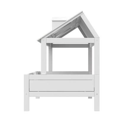 LIFETIME Kidsrooms Beach House børneseng i størrelsen 120x200 cm er skabt til børn, der har brug for lidt ekstra plads – og elsker følelsen af at have deres helt eget lille hus. Med tag og vinduer skaber sengen en hyggelig hulefornemmelse, der giver ro ved sengetid og inviterer til leg i løbet af dagen.