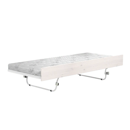 LIFETIME Kidsrooms gæsteseng med udtræksfunktion i hvidpigmenteret finish er en praktisk og fleksibel løsning, når der er brug for en ekstra soveplads. Med den smarte pop-up funktion løftes gæstesengen op i samme højde som den øvrige seng, så I kan sove side om side – ideelt til overnattende venner, søskende eller gæster.