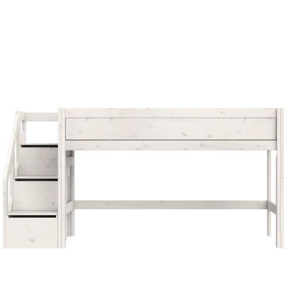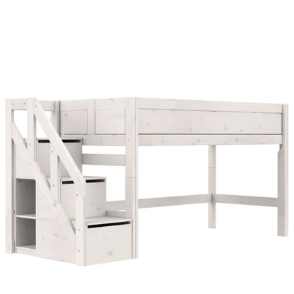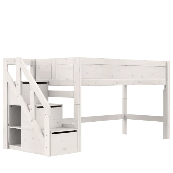 LIFETIME Kidsrooms halvhøj seng med trappe 128 cm 90x200 – hvidpigmenteret