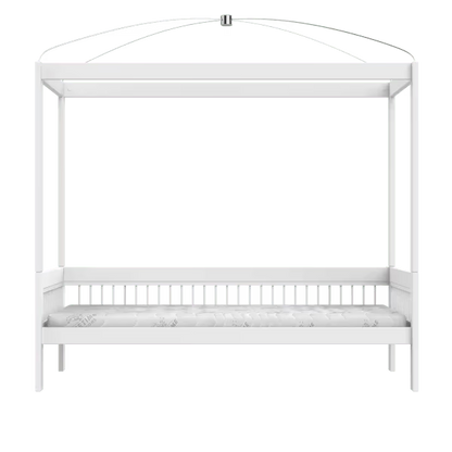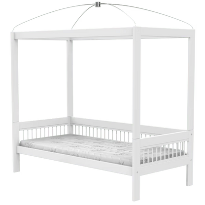Denne smukke himmelseng fra LIFETIME Kidsrooms skaber rolige og hyggelige rammer i børneværelset. Med sin lette konstruktion og mulighed for at tilføje blødt stof bliver sengen hurtigt et trygt sted til både søvn, fordybelse og leg.