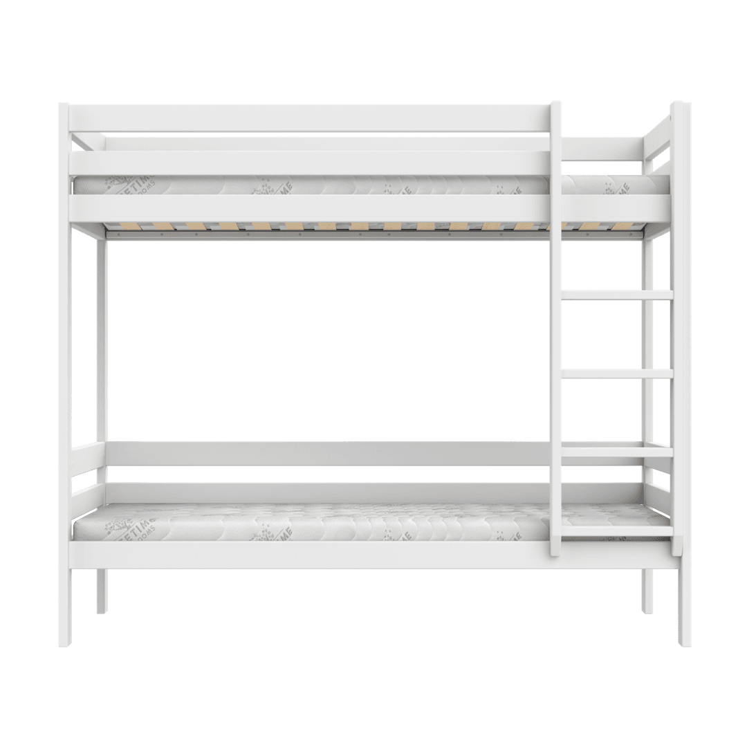 Det klassiske skandinaviske design giver et roligt og tidløst udtryk, som passer ind i de fleste børneværelser. De robuste hovedgærder og sengeheste i fuld længde bidrager til, at barnet kan sove trygt og sikkert – også i den øverste køje.
