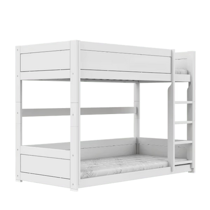 LIFETIME Kidsrooms lave køjeseng med stige i hvid er en tryg og pladsbesparende løsning til børneværelset, hvor både små og større børn kan sove sammen. Den nederste køje er placeret helt i gulvhøjde, hvilket gør sengen velegnet allerede fra ca. 2-års alderen og understøtter barnets selvstændighed i hverdagen.