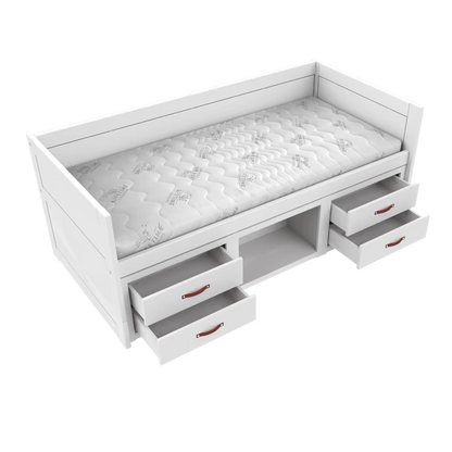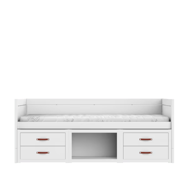 Alle skuffer er udstyret med soft close, så de lukker blidt og roligt. Det mindsker risikoen for, at små fingre kommer i klemme, og gør sengen behagelig at bruge i hverdagen.