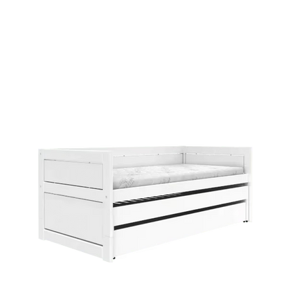 Gæstesengen leveres med standard lameller og er egnet til madrasser med en maksimal højde på 12–14 cm. Den anbefalede madras er LIFETIME Kidsrooms 700R.