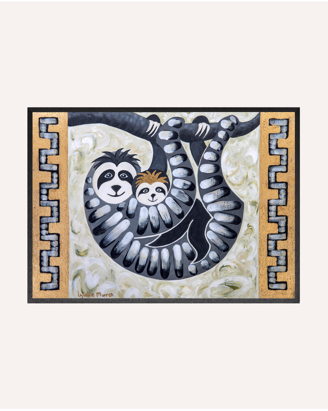 Lad roen flytte ind på børneværelset med dette charmerende kunstværk af Lykke Mørch. Maleriet forestiller et drømmende dovendyr, der hænger afslappet og minder os om vigtigheden af at tage sig tid og nyde øjeblikket. Et varmt og humoristisk motiv, der både får børn og voksne til at smile.