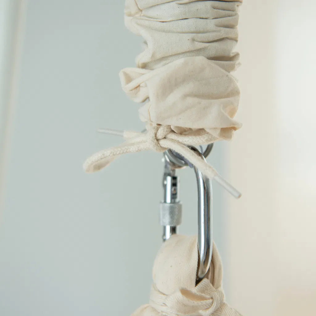 Fjedren leveres i en blød bomuldspose og er udstyret med en sikkerhedsstrop, så du kan være helt tryg, når dit barn sover. Den er nem at bruge og passer til både Membantu Basic og Premium slyngevugger.