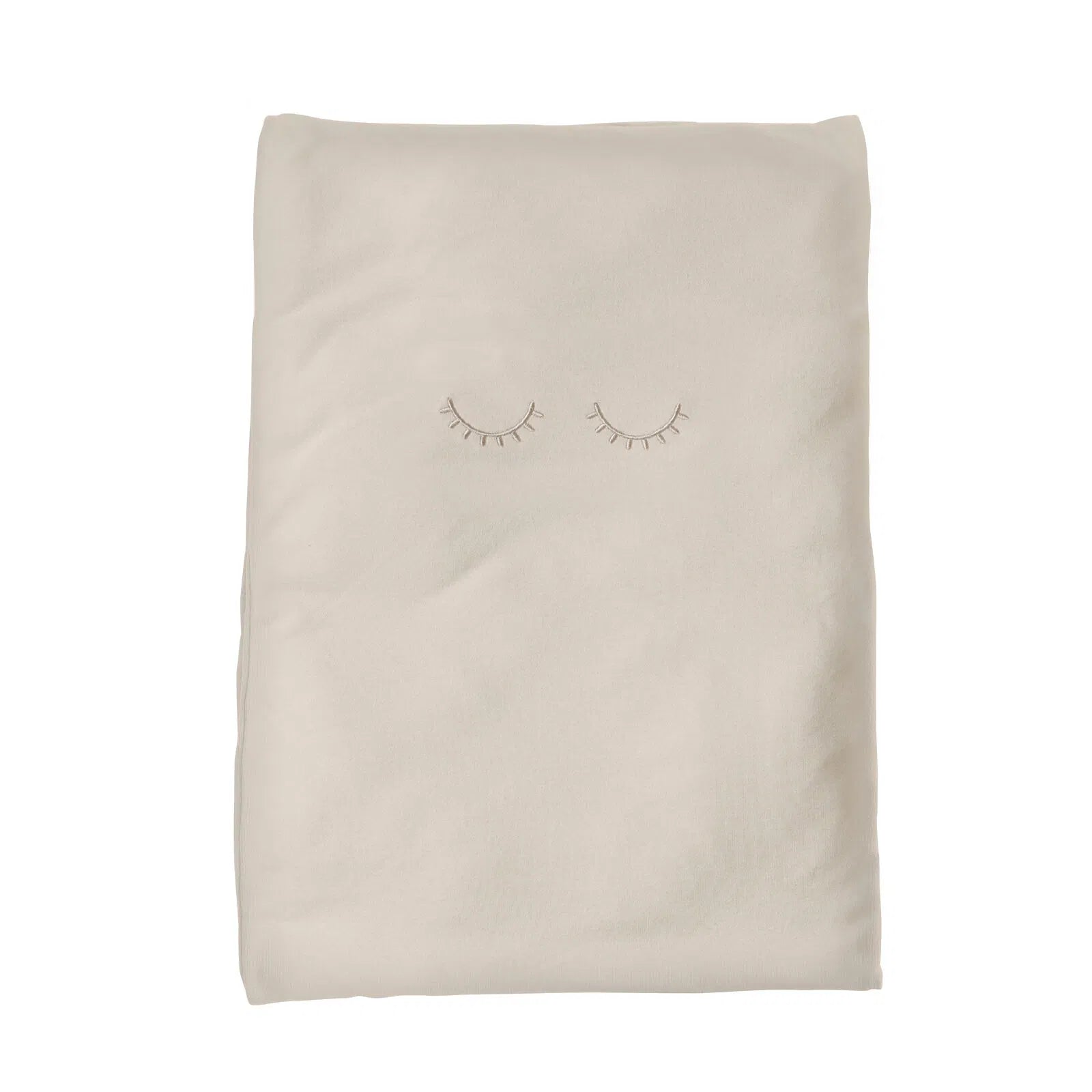 Premium-lagnet har et sødt broderet motiv med to lukkede øjne, der tilfører et charmerende og roligt udtryk til sovepladsen. Den bløde, åndbare bomuld sikrer en behagelig temperatur og et hudvenligt sovemiljø, så dit barn kan sove trygt og roligt.