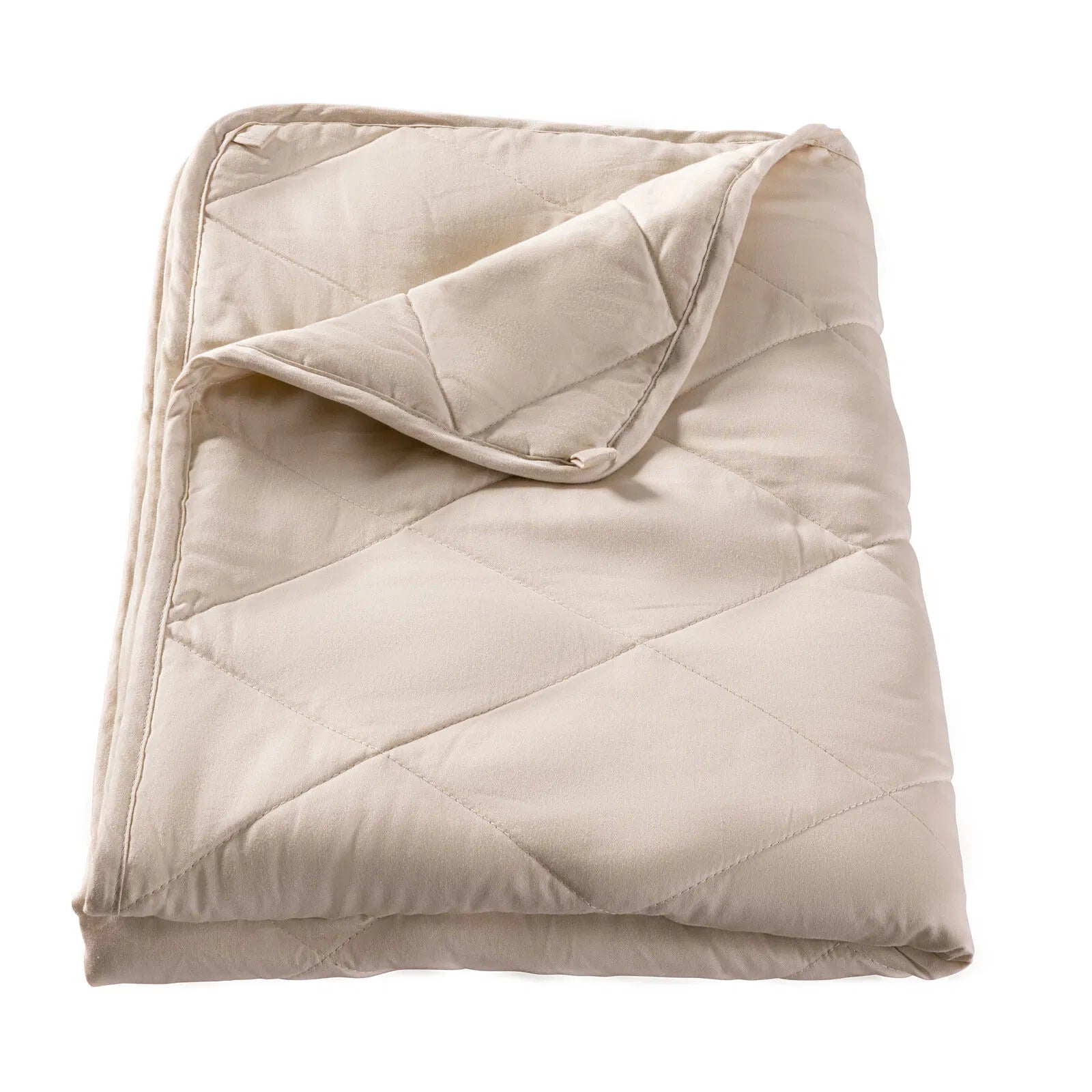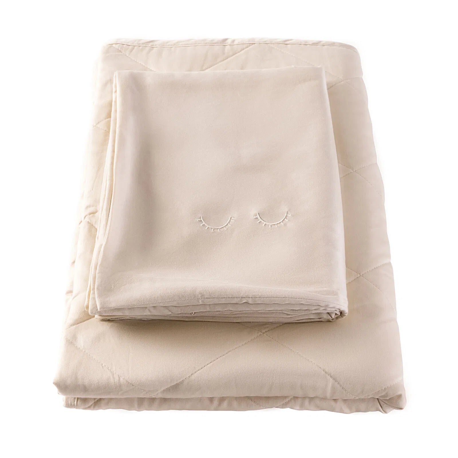 Membantu økologisk junior tyngdedyne i Beige er udviklet til børn fra 12 måneder til 7 år og giver en rolig og tryg søvn gennem blidt, jævnt fordelt tryk. Dynen vejer 3 kg og er fyldt med små glaskugler i sikre lommer, som efterligner følelsen af et beroligende kram.