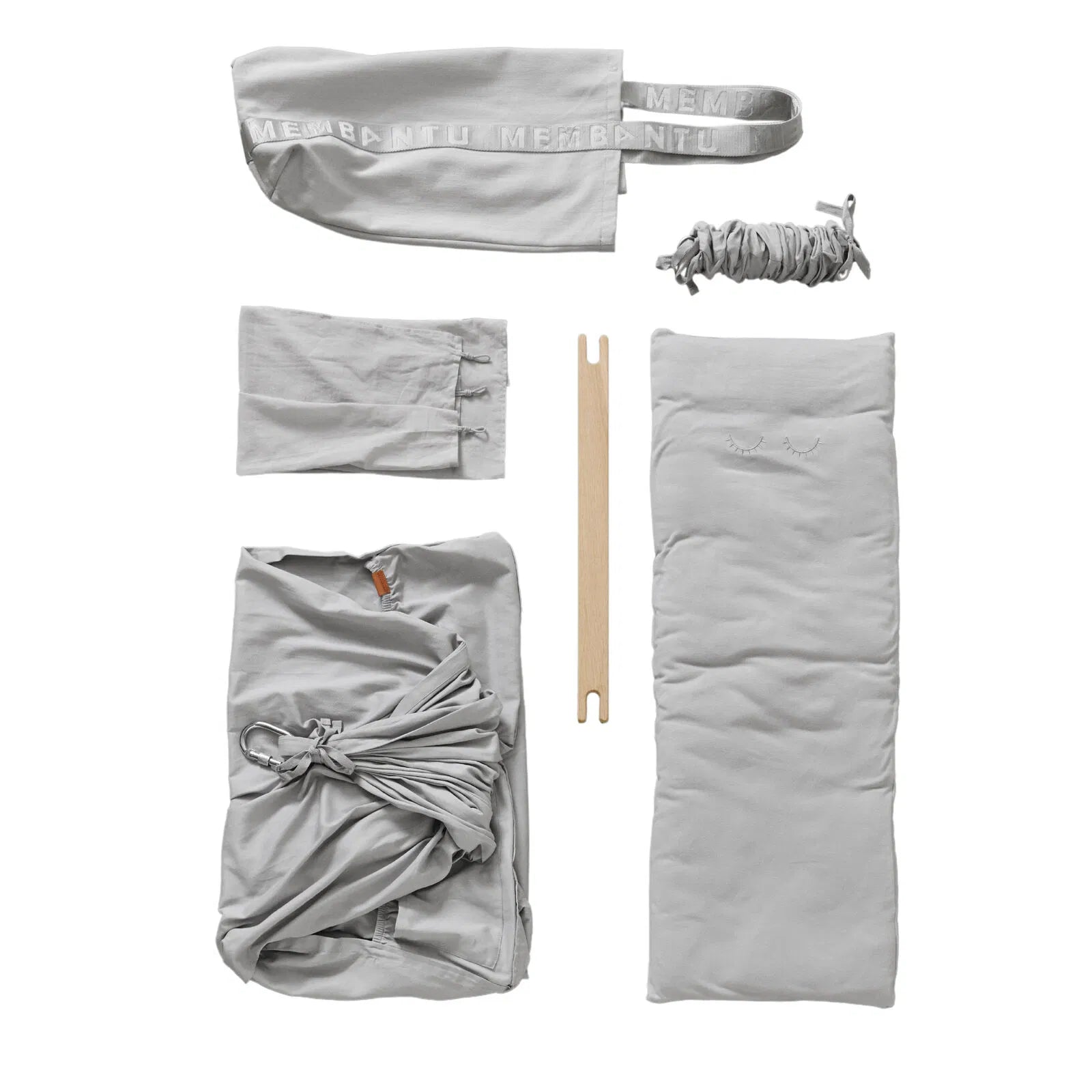 Med den medfølgende transporttaske er det let at tage slyngevuggen med på farten. Kombinationen af økologisk bomuld, bløde bevægelser og den åndbare uldmadras giver barnet ro og tryghed – og forældrene en velfortjent pause.