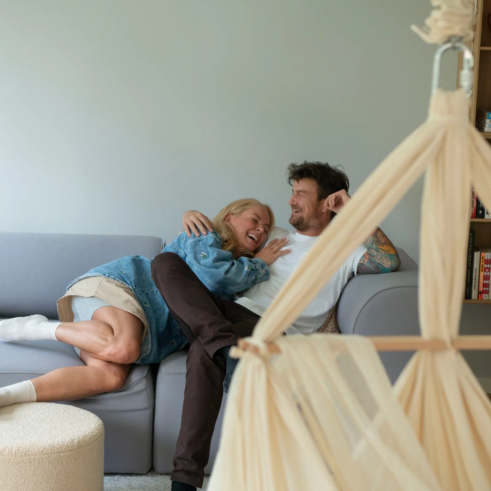 Membantu Premium økologisk tvillingeslyngevugge – Beige
