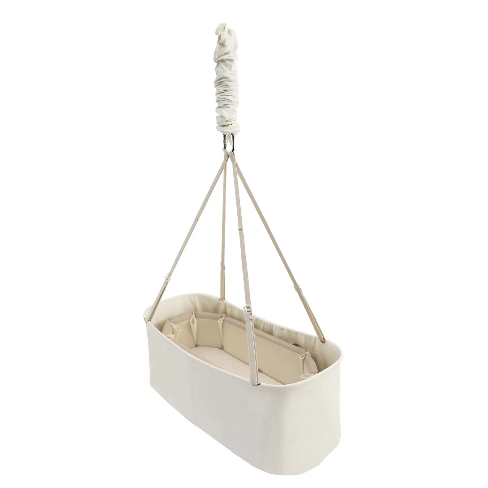 Vuggen er udstyret med en fast skummadras med åndbart bomuldsbetræk, som holder barnet tørt og komfortabelt. Den indbyggede fjeder giver en blid op- og nedadgående bevægelse, perfekt til at berolige urolige stunder. Vuggen er testet og godkendt efter europæiske sikkerhedsstandarder (EN 1130:2019 + AC:2020), og madrassen lever op til BS7177-standarden for åndbarhed og sikkerhed.