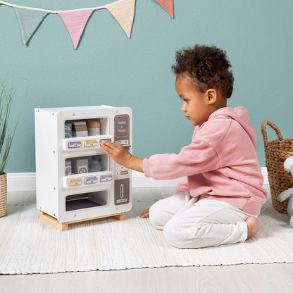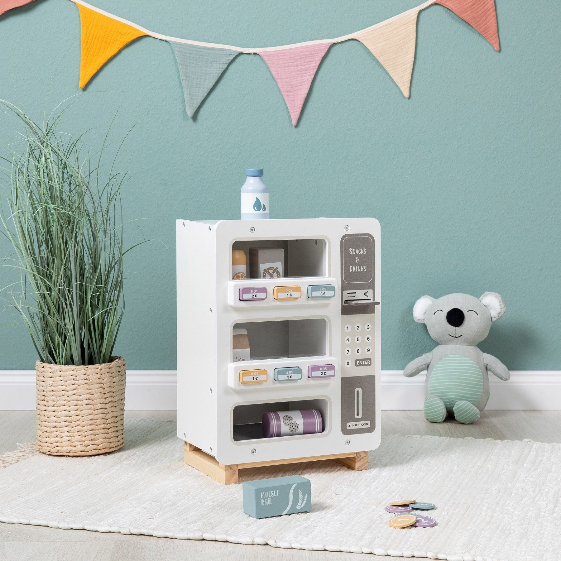 Tryk på knappen – og velkommen i minibutikken! MUSTERKIND Cornus salgsautomat i hvid og multifarvet giver børn en autentisk butikoplevelse lige i børneværelset. Lavet i FSC®-certificeret træ med flotte detaljer og funktionelle knapper, som gør legen både sjov og realistisk.