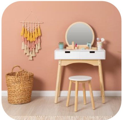 - Mere end et sminkebord: Den store bordplade kan også bruges som skrive- og tegneplads – ideel til kreative aktiviteter.