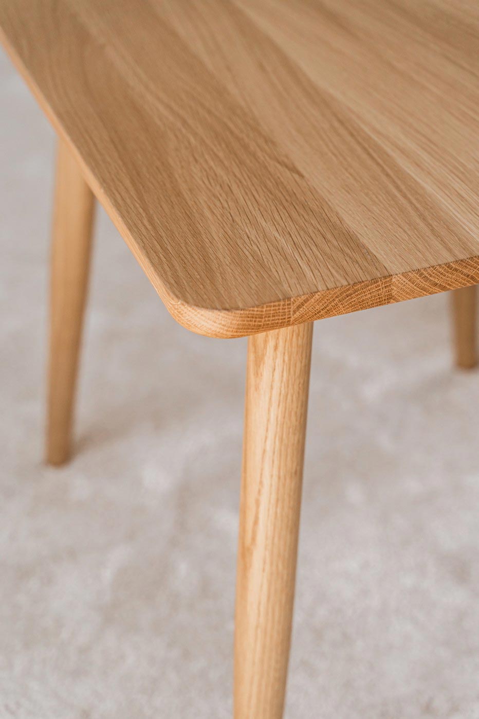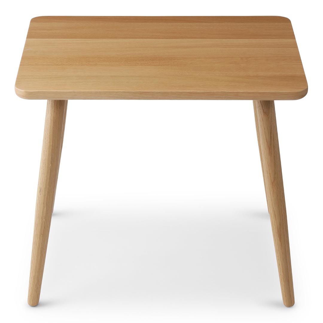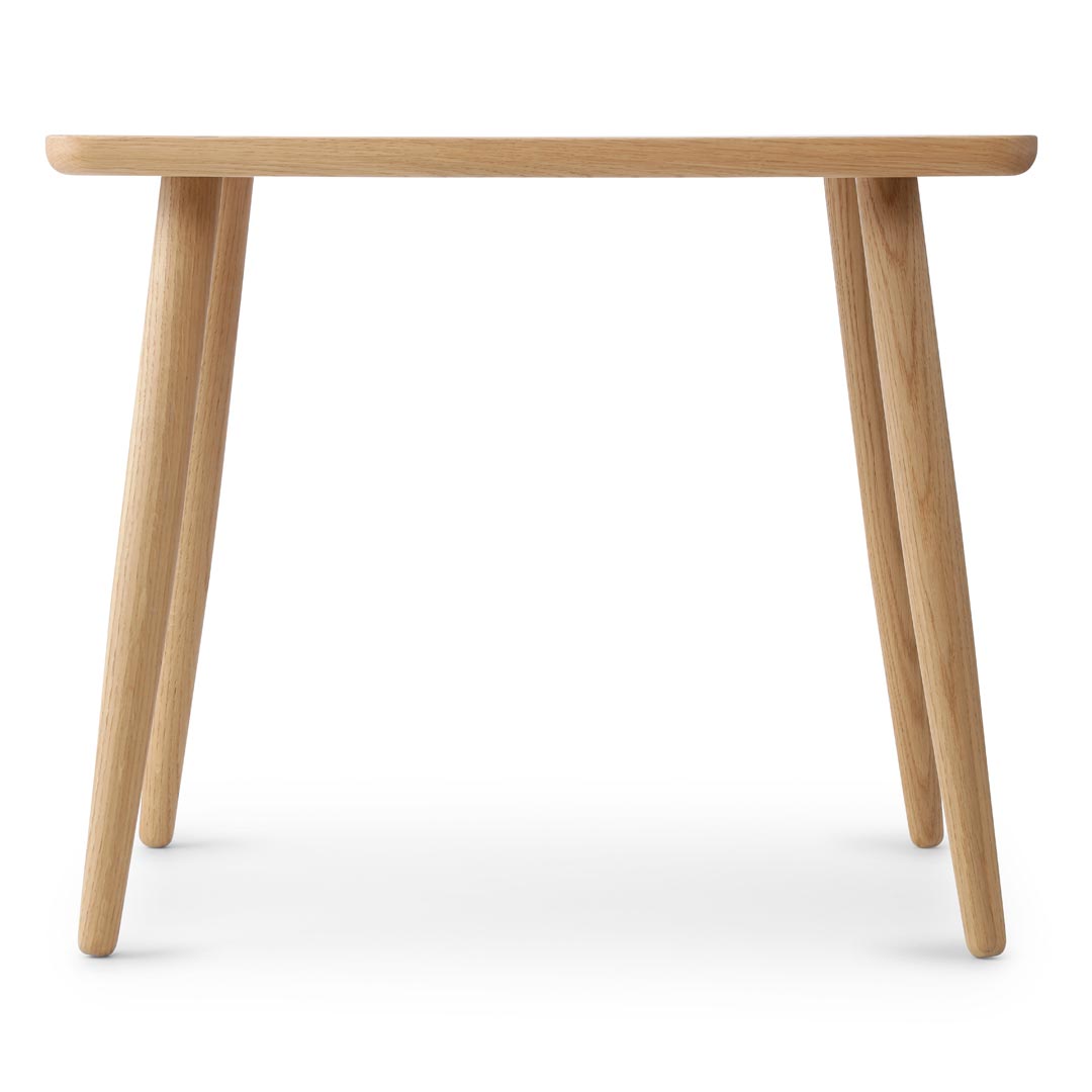 Bordet er udført i FSC®-certificeret europæisk eg og behandlet med en mat, giftfri lak, som gør det nemt at rengøre efter brug. Bordpladen har smukt afrundede kanter, der både giver et raffineret udtryk og gør bordet trygt for børn at bruge uden risiko for skarpe kanter.